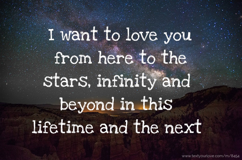 I want to love you from here to the stars, infinity and beyond in this lifetime and the next.