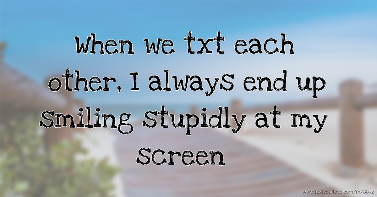 Next text message: When we txt each other, I always end up smiling stupidly at my screen"