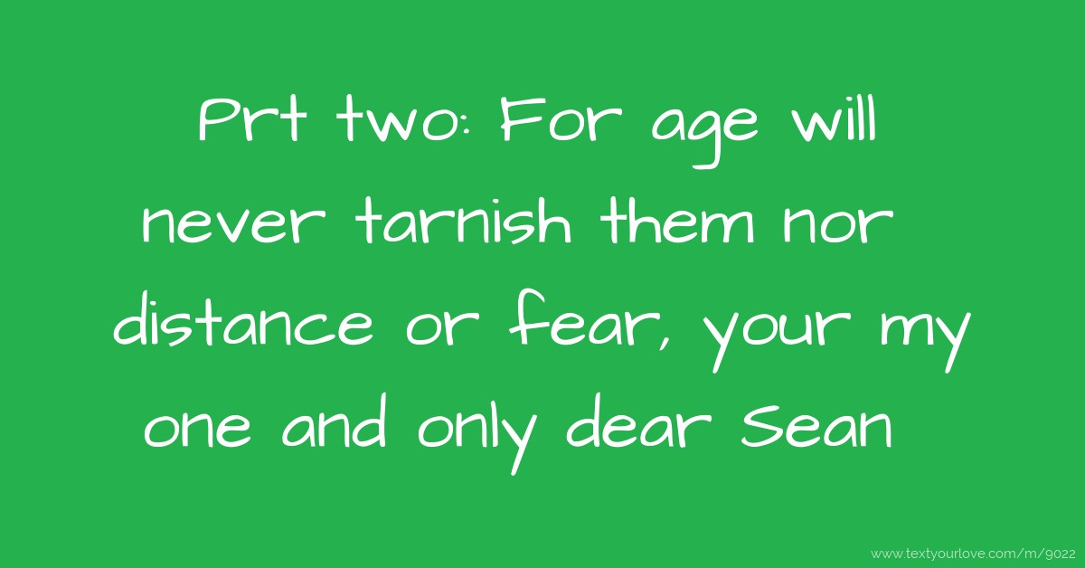 Prt two: For age will never tarnish them nor distance or fear, your my one and only dear Sean.