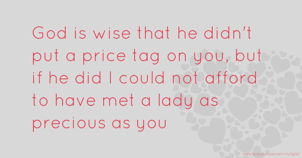 God is wise that he didn't put a price tag on you, but if he did I could not afford to have met a lady as precious as you
