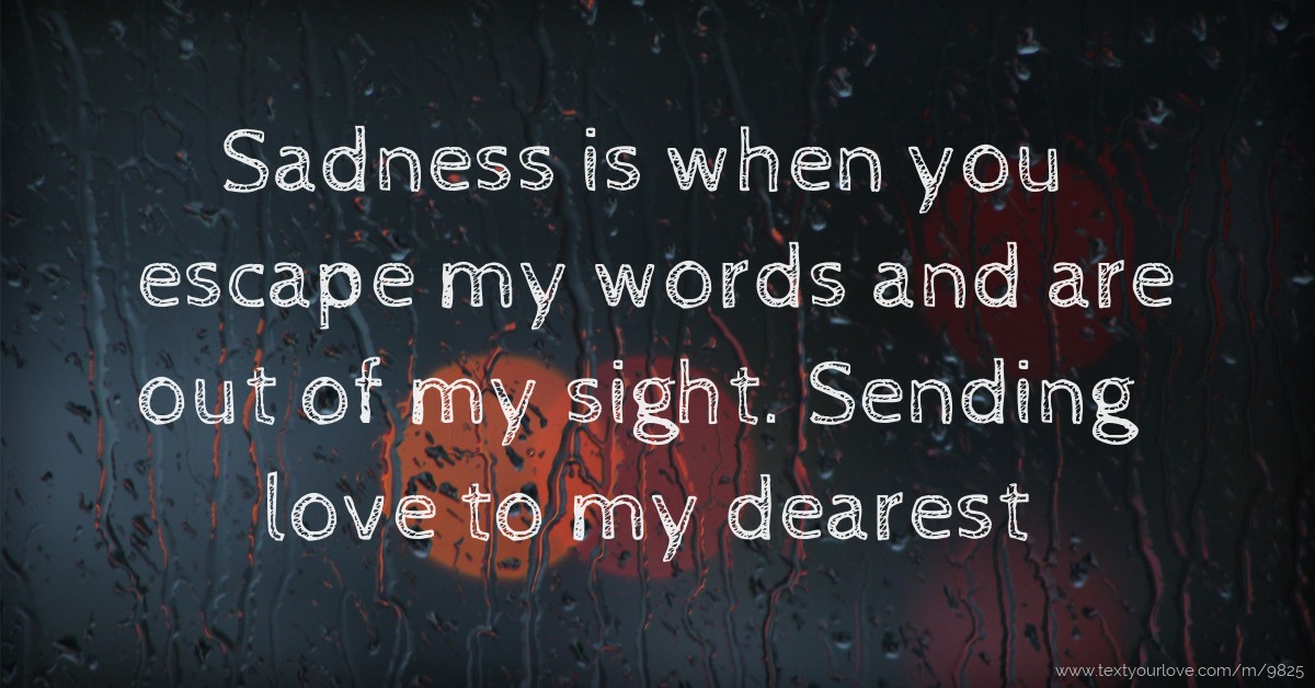 Sadness is when you escape my words and are out of my sight. Sending love to my dearest.