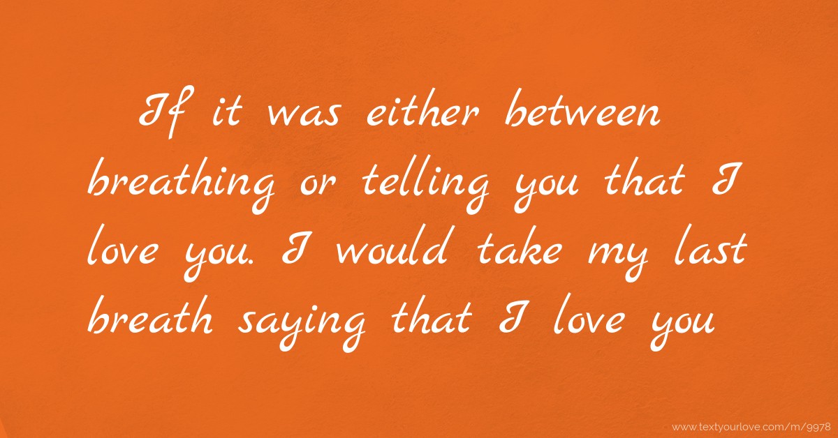 If it was either between breathing or telling you that I love you. I would take my last breath saying that I love you